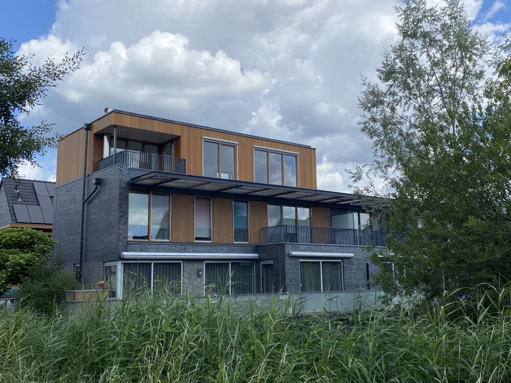 Op verschillende woningen met zicht op het IJ bijzonder luxe opbouwen geplaatst.